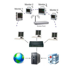 Wired & Wireless connectivity to Patient Monitors (Monitor Dependent).